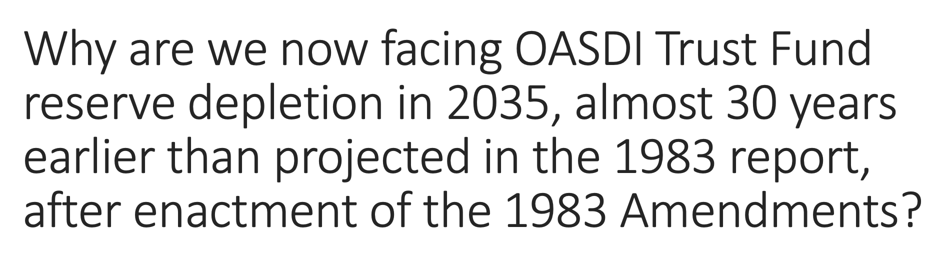 Back in 1983, following the prescriptions of the Greenspan Commission, changes were made that were supposed to prevent Social Security from “running out of money” over the next 75+ years. Yet here we are, in the Fourth Circle of Hell, wringing our hands over looming shortfalls and automatic benefit cuts. Why is that? As Stephen Goss put it: