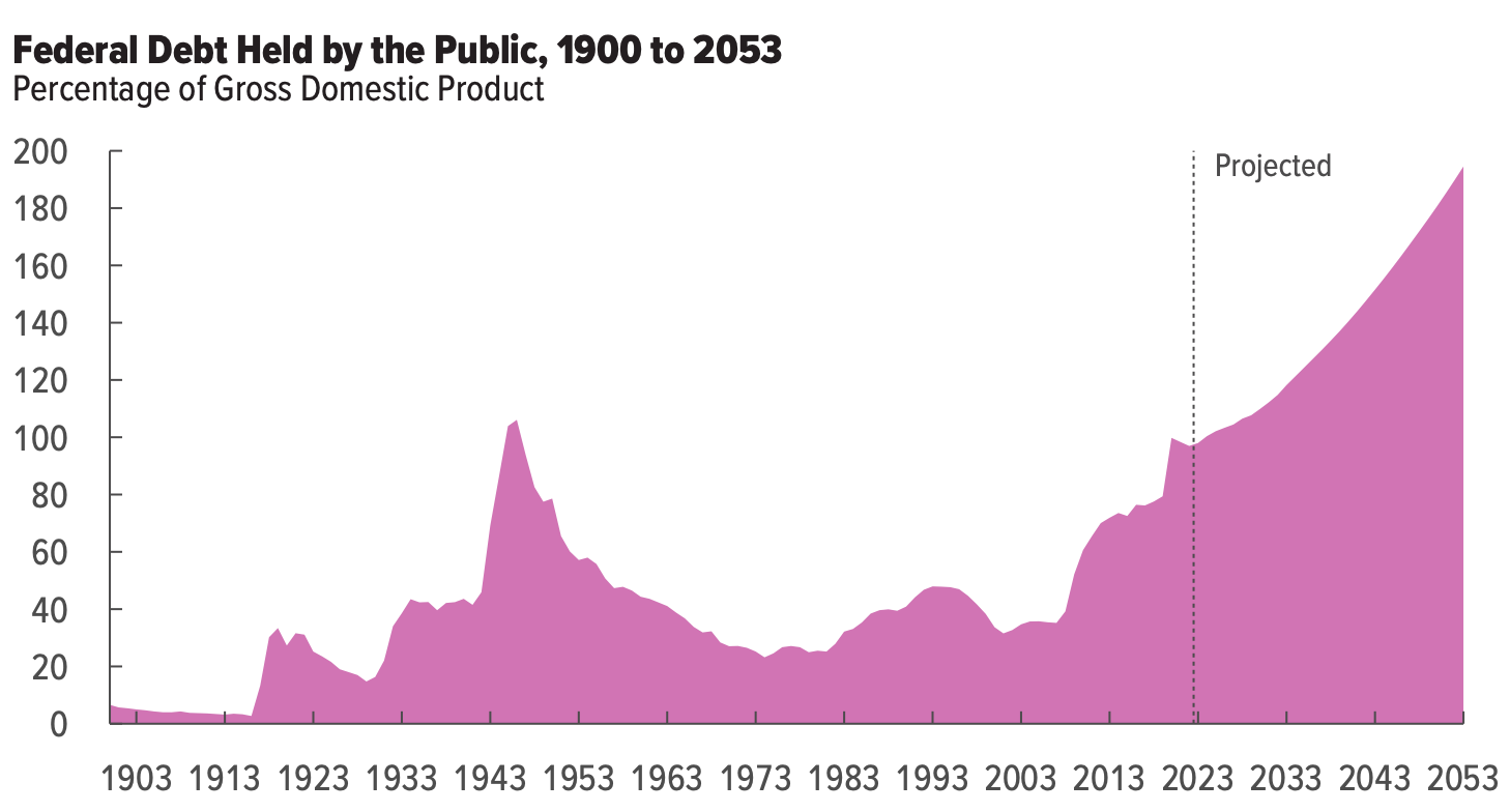 Regular readers of The Lens know that I am neither alarmed by nor particularly interested in projections like the one depicted above. If you aren’t familiar with my views, this chapter from my book The Deficit Myth will get you up to speed.