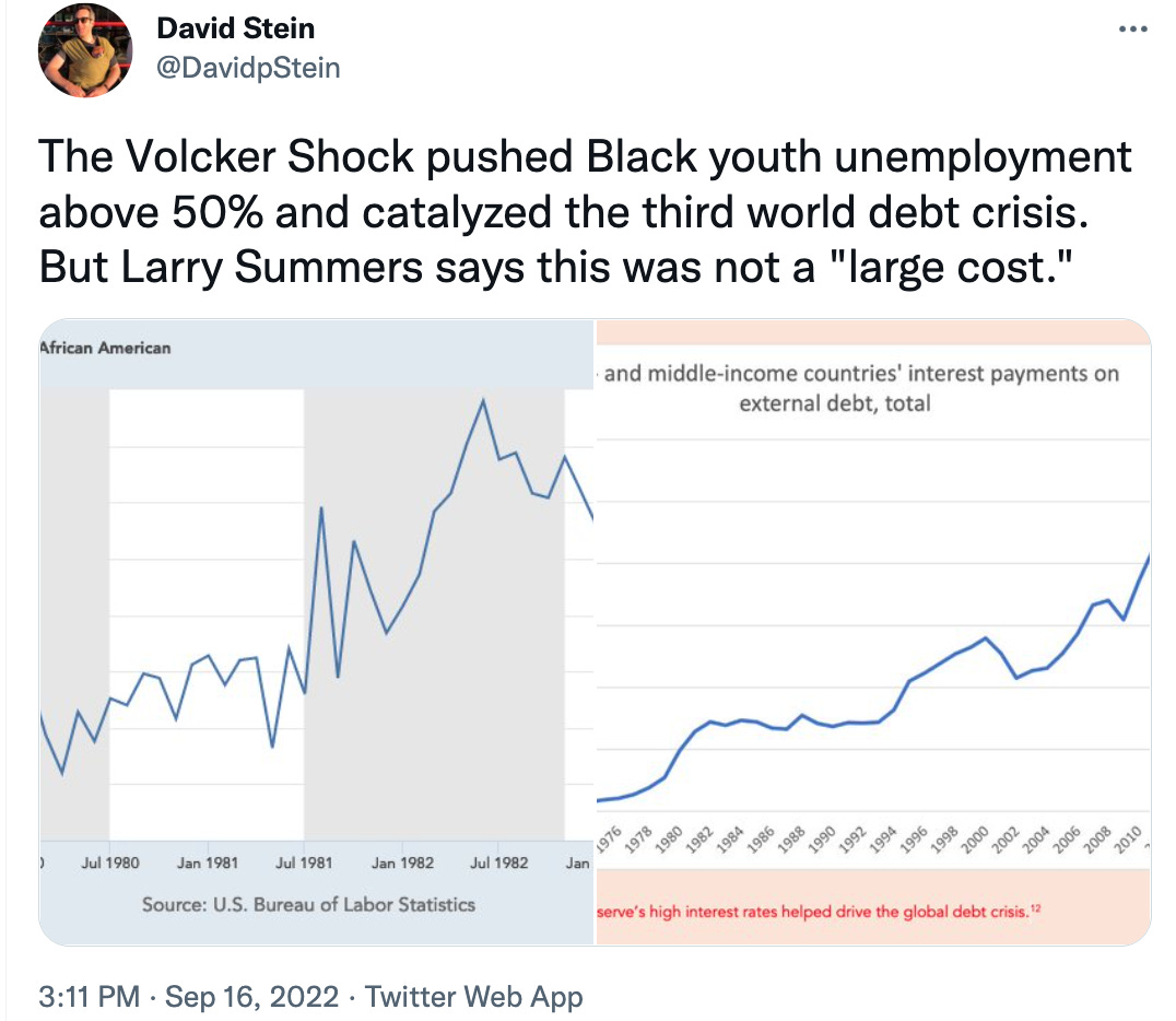 Plenty of people, including this history professor from UC Santa Barbara, immediately countered Summers, reminding us that rate hikes have indeed caused immense suffering.