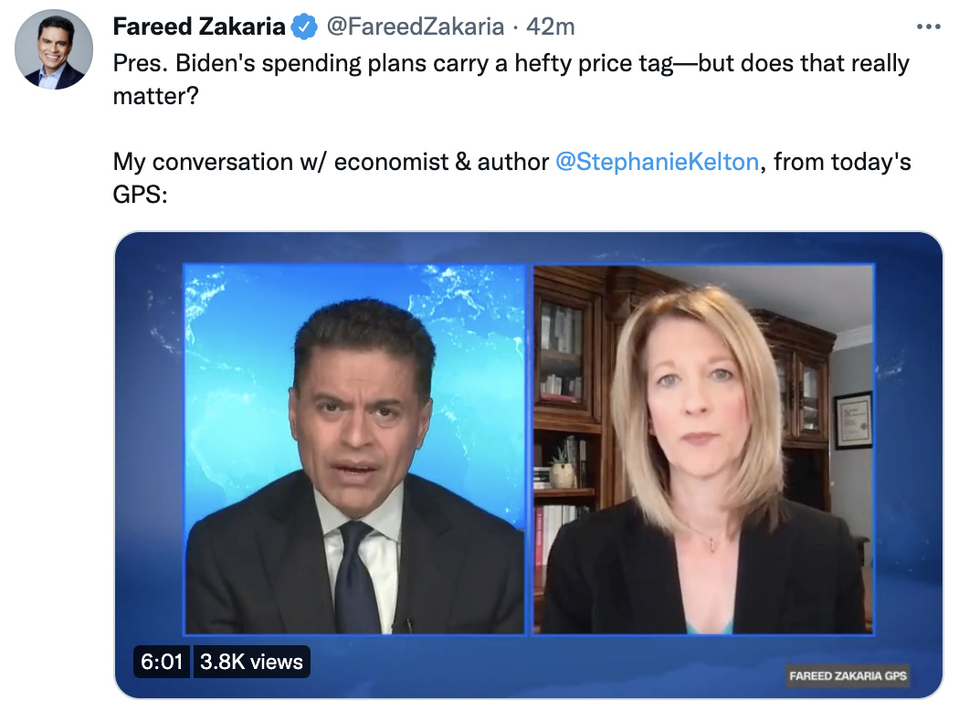 Earlier today, I joined CNN host Fareed Zakaria to talk about deficits, inflation, and whether we’re focusing on the wrong things when we debate the price of the Build Back Better agenda and how to “pay for” it. I knew ahead of time that we would have only 5-6 minutes to cover a lot of ground, and I did my best in the short time we had.