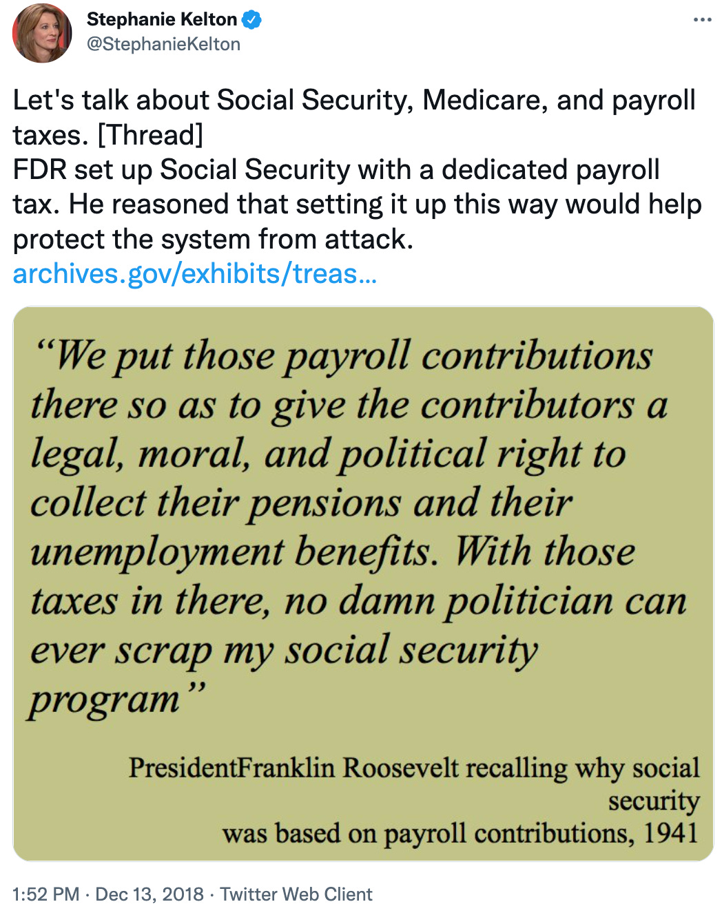 I’ve written quite a lot about Social Security over the years. Of course, I come at it from an MMT perspective, which means that I have never worried about the program’s “solvency” the way many other economists do. The fullest expression of my views can be found in chapter 6 of my book, The Deficit Myth, but this Twitter thread provides a decent summary.