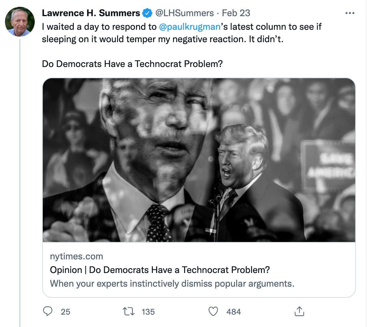 For some reason, Larry Summers was incensed by Krugman’s column. Perhaps it was because Krugman credited Sen. Elizabeth Warren (D-MA) for taking the issue seriously. After “sleeping on it,” Summers fired off this thread, effectively dismissing the argument that price-gouging is one of the reasons consumers are paying higher prices.