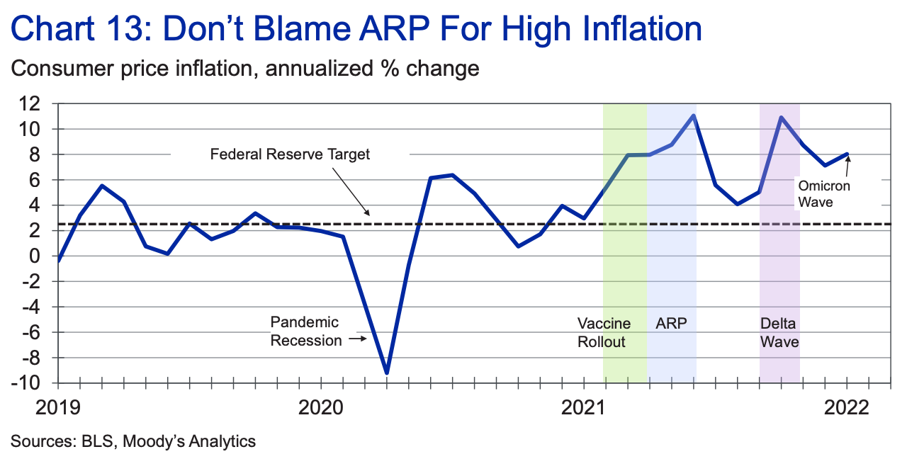 “Arguably the most controversial of the U.S. fiscal support packages was the nearly $2 trillion American Rescue Plan that became law in March 2021. The ARP has been criticized as being too large, overstimulating an already fast-improving economy and significantly contributing to the currently uncomfortably high inflation.